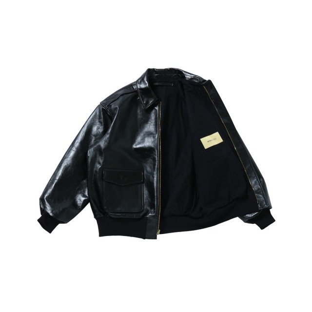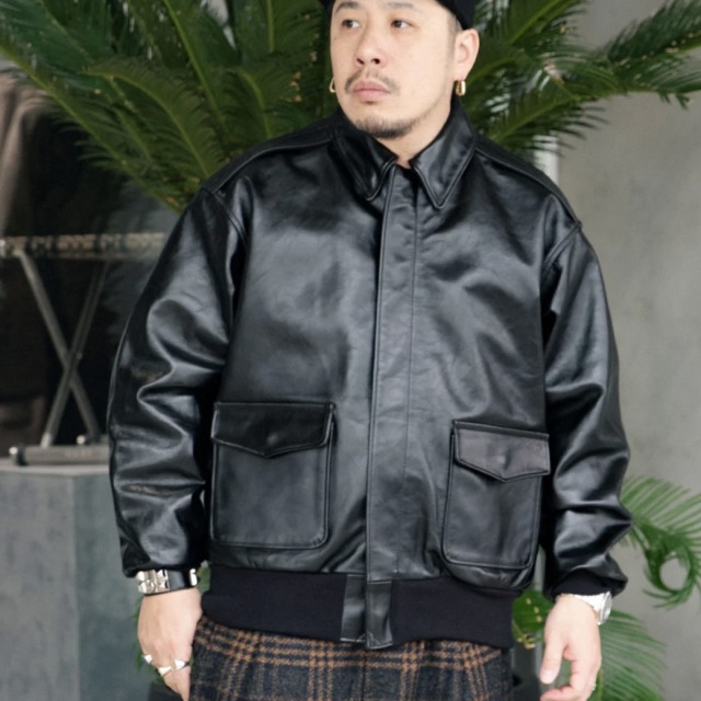 1941~50年のA-2がベース。 素材 ・表革:カウレザー・オイルガーメント仕上げ。国内雄牛原皮使用/クローム・タンニン混合鞣し/熱圧加工仕上。 ・袖リブ/ファスナー:シーズンレスで着用可能なアクリルのチューブリブを採用。リブ、ファスナー共に全てMADE IN JAPAN。 ※付属品としてドッグタグが封入