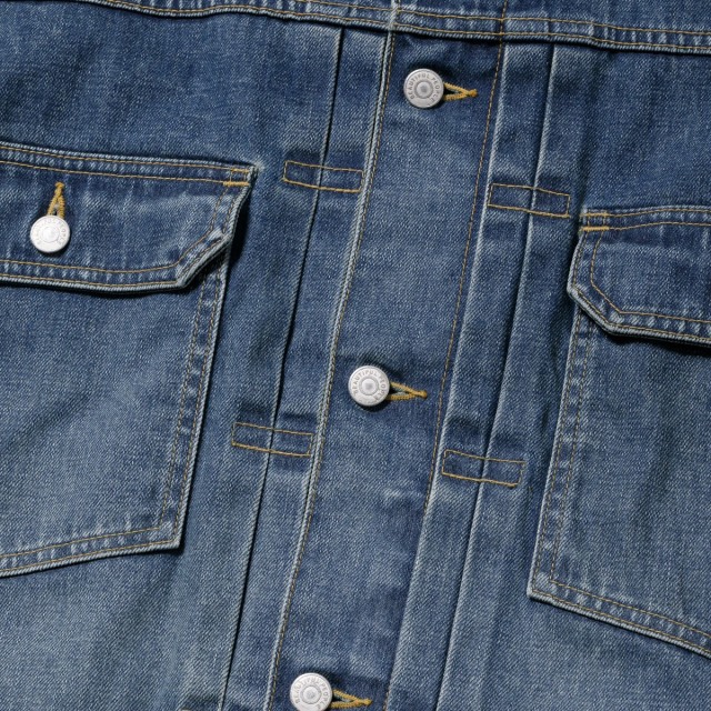 ・ロゴ入りのネオバー釦とリベットを使用