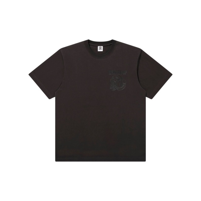 アメリカにある "猛犬注意" のサインボードをオマージュし "OG LABEL" ロゴを咥えた犬のグラフィックをクリアプリントで施したピグメントダイ仕様の T シャツ。 ボディは 8.5oz。