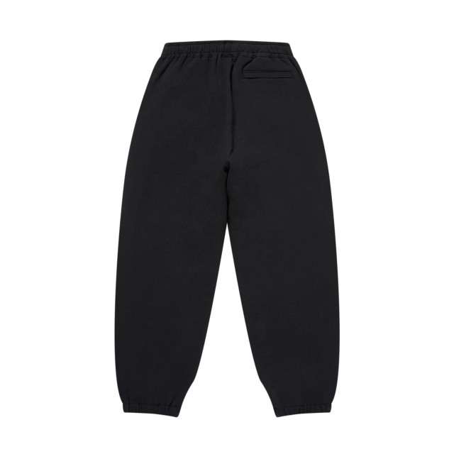 ネットスラングの "SYBAU" のミームからサンプリングしたグラフィックのプリントの上にラインストーンを施したスウェットパンツ。 同デザインのプルオーバーフーディとセットアップで展開。 ボディは 12.5oz。