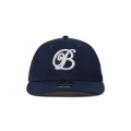 NEW ERA に別注をかけた LP 9FIFTY 仕様のメッシュキャップ。 フロントに "B" エンブレム、バックにスクリプトタイプのブランドネームの刺繍が入る。