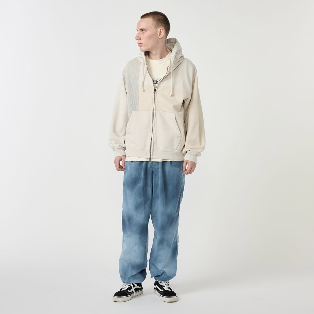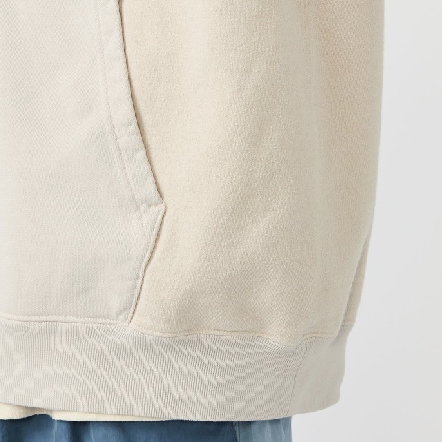 ・製品染めを施すことにより、着込まれたスウェットのような色味と風合いを表現