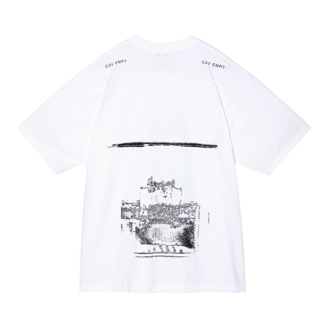 100%コットン。プルオーバー。クルーネック。前身頃、後ろ身頃にグラフィック。後ろ身頃ショルダーにCAV EMPT。ウォッシュ加工。日本製。