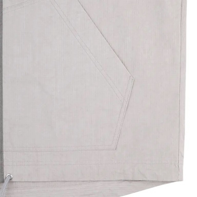 60%コットン、40%ナイロン。CORDURA® リップストップ生地。 ジップアップ。務歯見せ。セットインスリーブ。 後ろ身頃裏に布パッチ。左袖上部にシリコンパッチ。 前身頃にパッチポケット。前身頃、袖で色・生地切り替え。 フード、裾にドローストリング。袖口にゴム。 ワイドシルエット。ウォッシュ加工。日本製。