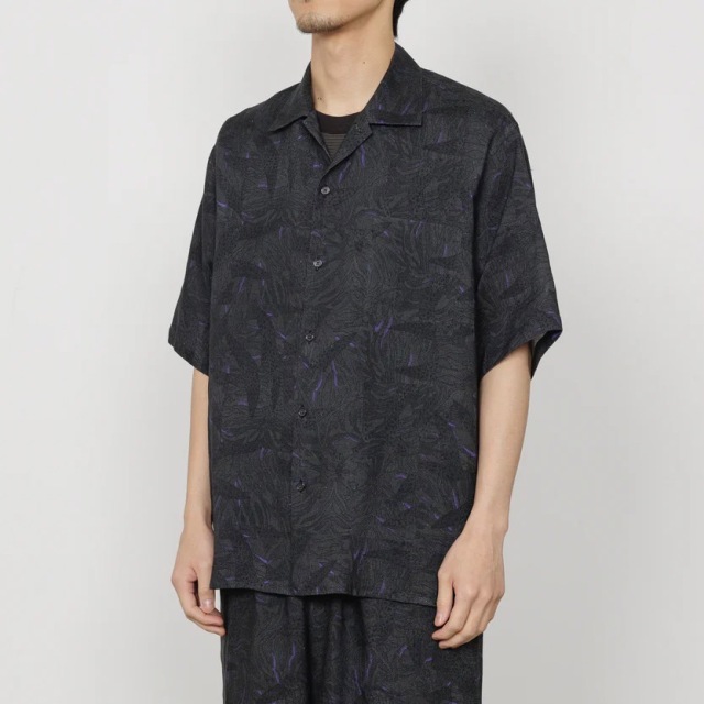 半開きの衿元が特徴の「OPEN COLLAR SHIRT S/S」。