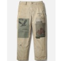 特徴的な光沢とハリ、コシを兼ね備えるタフな高密度織のウエストポイント生地に、サベージ加工を施したチノパンツ。4種類の当て布リメイク、手かがりリメイク、オイル汚し加工を用いてリアルなエイジングを表現。前面にハンドペイント風のモチーフをプリント。オリジナルの4つ穴ボタンを採用し、コラボレーションネーム、サイドシームにピスネームを付属。ロサンゼルス在住のアーティストMatt McCormick(マット・マコーミック)主宰ONE OF THESE DAYSとのジョイントワークアイテム。