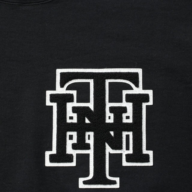 表糸に米綿の空紡糸を使用したヘヴィ裏毛素材のクルーネックプルオーバー。ロゴとモチーフをワッペンとプリントで配置。左裾にブランドタグ、脇接ぎにピスネームを付属。ワンウォッシュ仕上げ。