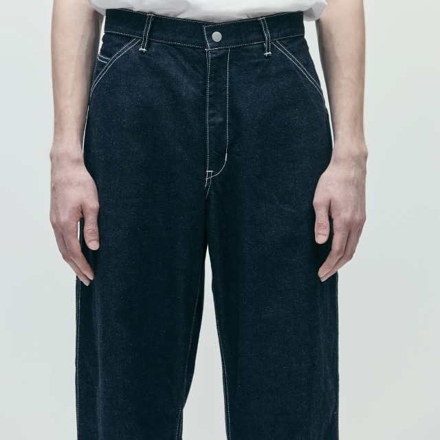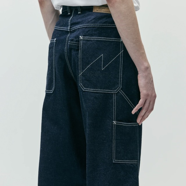 12ozデニム生地を使用したペインターパンツ。、ヒップポケットには"N"型のデザインステッチを施し、ツールポケットやハンマーループを配備。オリジナルのスナップボタン、とフロントファスナー、スレキ生地を採用。ヒップポケット上部にネームタグ、サイドシームにピスネームを付属。ゆとりのあるストレートシルエット。