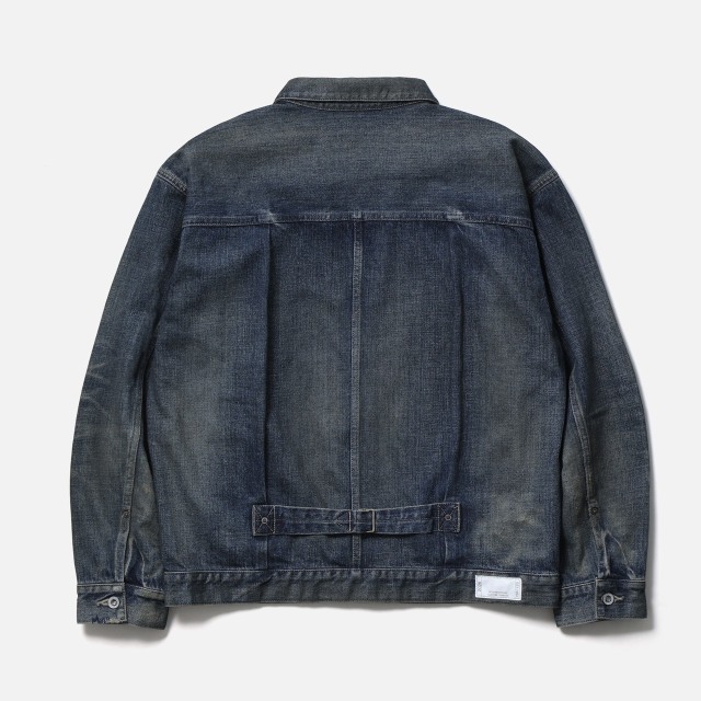 オリジナルの12ozデニム生地にサベージ加工を施した1stタイプのサベージデニムジャケット。ダメージ加工やリメイク加工、ハードな色落ちを用いて、生地の脆化を表現したリアルなエイジングが特徴。胸ポケット口にホワイトハーツビーズとハンド刺繍を用いた装飾ディテールと配色のパイピングテープを配置。オリジナルのタックボタンとリベットを採用。カスタムクラフテッドアイテム専用のサイズネーム、脇接ぎにピスネームを付属。