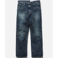 12oz.オリジナルデニムをベースにウォッシュド加工を施したデニムパンツ。セルヴィッヂデニム生地からボタン、リベットといったパーツに至るまで全てオリジナルで製作。フロントジッパーフライに忍ばせたシグネチャーテープやヒップポケットの”N”ステッチ、レザーパッチ等のディティール。カスタムクラフテッドアイテム専用のサイズネームを付属。ワタリ、ヒップ、裾幅にゆとりを持たせつつ裾にかけてややテーパードさせた定番のベーシックシルエット。