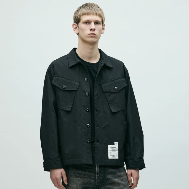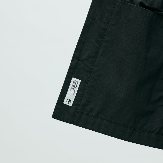 燃え広がりにくい特性を備えるモダクリル繊維ファイバーを一部使用した中厚肉のリップストップ素材のファティーグシャツ。程よいハリ感とナチュラルでサラッとした質感が特徴。斜めに配置したマチ付きポケットとハンドポケットが特徴。背面にロゴをプリント。オリジナルボタンを採用。左裾と下前立て裏にブランドタグ、脇接ぎにピスネームを付属。ワンウォッシュ仕上げ。