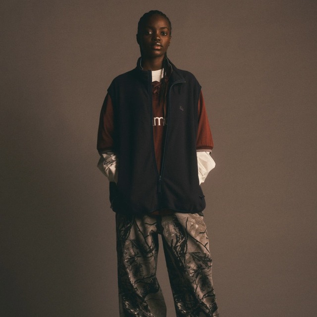 毎年地味に売れ続けているフリースベスト。程よくゆったりとしたサイズ感でインナーを選ばない事や、ファスナーの見え方だったり、パイピングの始末にこだわったりと着る人にとって実はどうでもいいことにこだわって作っているのがわかってもらえているのかなと地味に嬉しいです。素材にはリサイクルフリースを使いながら、派手な差し色には目もくれず地味な3色展開。ベストはいろんな場面で使えるので地味な色のほうが使いやすいというのが長年の研究の結果導き出した答えです。左胸にロゴ刺繍入り。 FABRIC POLYESTER 100%