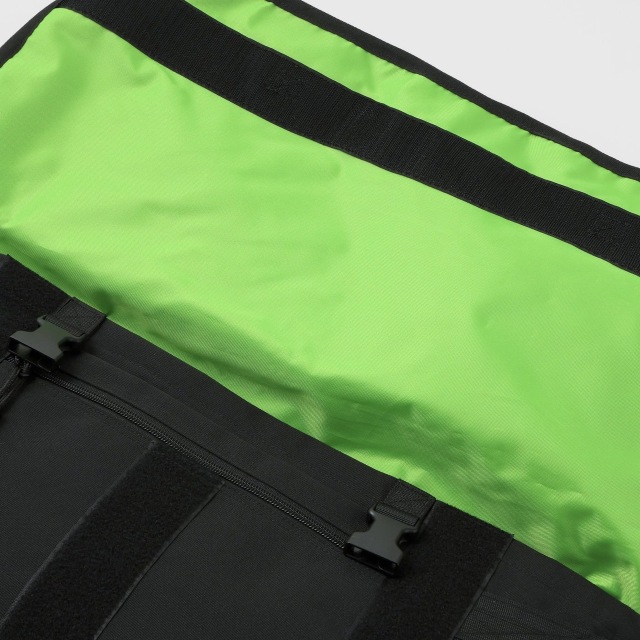2000年代にピストが流行していた時代に日本でも市民権を得たメッセンジャーバッグ。フィックスという固定ギアで街を走る姿の背中には必ずと言っていいほどそのバッグが使われていました。近年ではもう少しおおらかな意味でそれぞれが自転車文化を楽しんでいるのを横目に感じながら本格的なメッセンジャーバッグのディティールに大好きなバックパックのあのサブポケットを並べてつけてみたら、少しアウトドアも感じられる雰囲気の力の抜けたいいバッグに仕上がりました。背面にはリフレクターも付いて視認性も良く、3点止めでがっちりとホールドできるところも最高です。