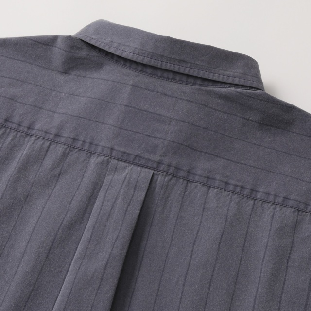 上質な米綿をもとに ブレンドしたコットンを 40番手のコンパクト糸に紡績して 高密度な平織り組織にすることで、 ハリ腰のある素材感に仕上げています。 特殊な硫化染料を使用しており着込むほどエイジングが楽しめる素材です。