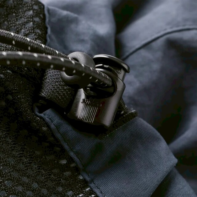 裾のアジャスター付きドローコードを絞ることでシルエットのアレンジも可能。素材はコットンライクの肌触りが特徴のオリジナルカモ柄のナイロンタスランタフタを使用。軽さの中に適度なハリと強度を持ち、撥水性、防風、紫外線ブロックなどの機能を兼ね備えています。