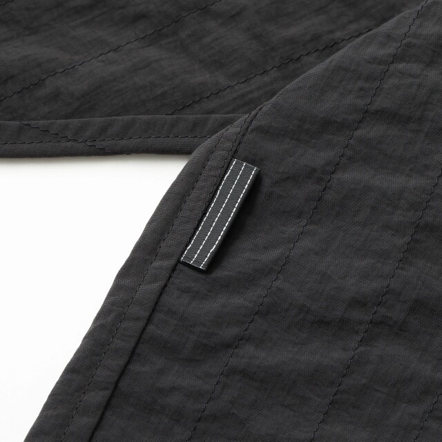 生地と同色のストライプステッチを施したオリジナルナイロン生地を使用しています。 素材はコットンライクの肌触りが特徴のナイロンタスランタフタを使用。 軽さの中に適度なハリと強度を持ち、撥水性、防風、紫外線ブロックなどの機能を兼ね備えている。