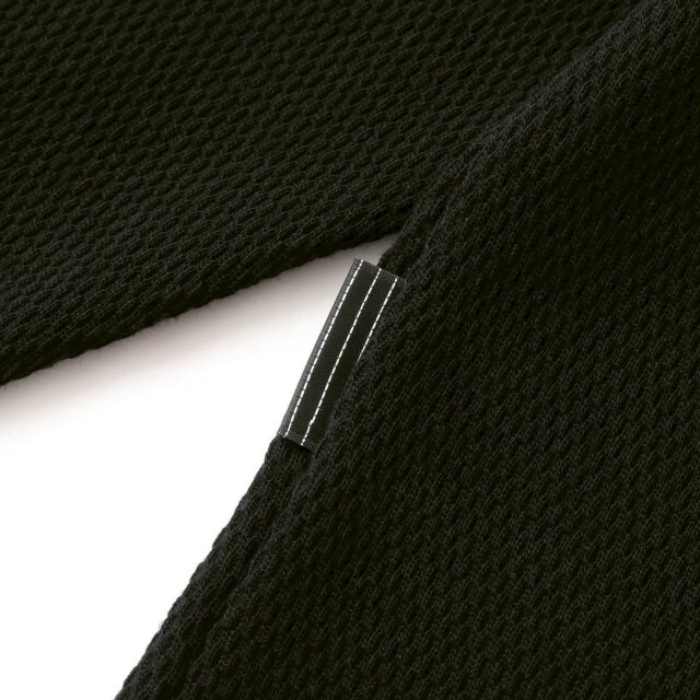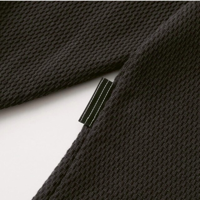 素材はBD糸 (オープンエンド精紡機を用いた糸) を使用する事により、シャリみのあるさらっとした着心地が特徴のサーマル生地を使用。