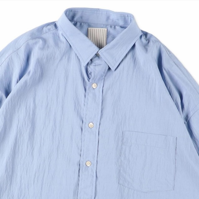 生地の落ち感を考慮して、従来よりも袖巾やアームホールをコンパクトに調整して綺麗なシルエットが出るように UPDATE しております。素材は環境配慮型素材「ECOVERO」をつかったナチュラルな表情感のある軽量タイプライターを使用。艶のあるしなやかなハリ感とドライでさらりとした風合いの着心地の良い快適な素材です。