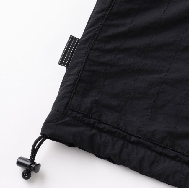 シンプルなベストを独自のサイズバランスにアレンジしたナイロンベスト。身幅、袖周りを大きくアレンジしているのでインナーにボリュームのあるアイテムと合わせてもストレスなく着用可能。生地と同色のSFCストライプステッチを施したオリジナルナイロン生地を使用しています。素材はコットンライクの肌触りが特徴のナイロンタスランタフタを使用。軽さの中に適度なハリと強度を持ち、撥水性、防風、紫外線ブロックなどの機能を兼ね備えています。