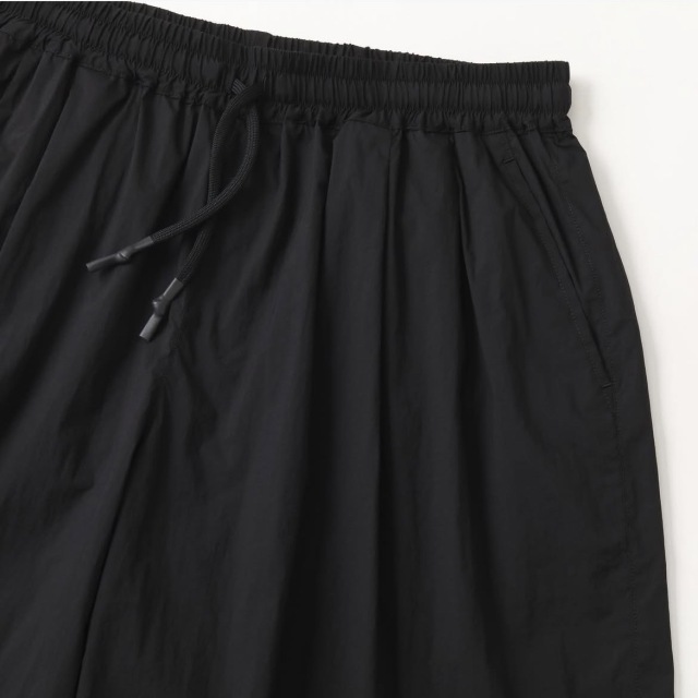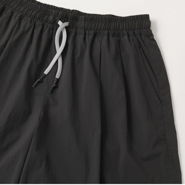 新型のバギーシルエットのナイロンショーツ。素材は20Dのナイロンを使った、超軽量・強撥水・ハイストレッチ生地を使用。細い糸を使用しながらも高密度であるため、独特なハリ感・上質な見え方が特徴の素材です。
