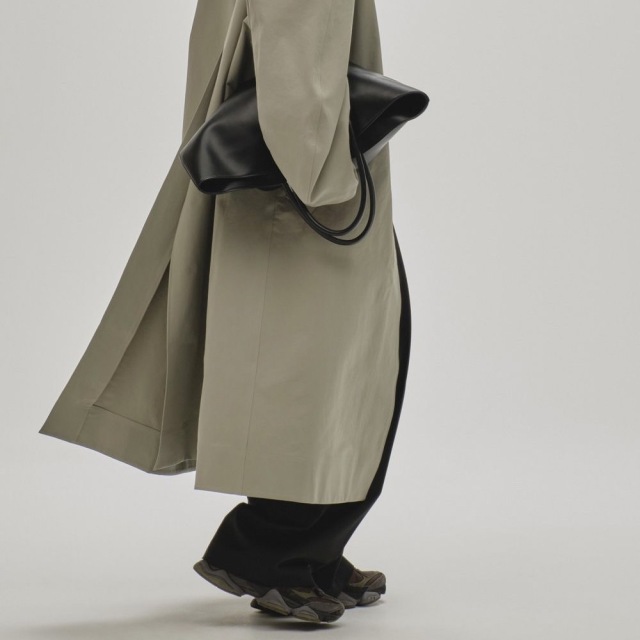 本革顔負けのしぼ感と、滑らかな質感が魅力の牛床革を使用したバッグ。ファスナー引手のデザインやポケット口のディテール、細やかなステッチワーク等ミニマルなデザインの中にもこだわりの詰まったアイテム。広めのマチ付きで、A4サイズも収容可能なサイズ感はデイリーからビジネスシーンまで幅広く活躍します。
