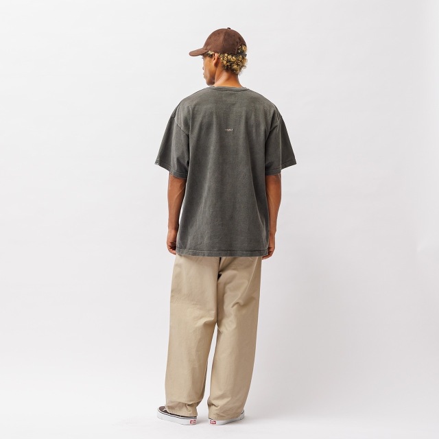 2重構造のプレーティング天竺を使用し、顔料染したTシャツ。バックに刺繍モチーフを配置。