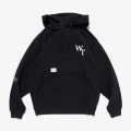 厚手の裏毛を使用したプルオーバーフーディー。アームホール広めのゆったりしたシルエットが特徴。フロントにアップリケモチーフを配置。