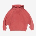 反毛混紡のコットンとリサイクルポリエステルの裏起毛生地を使用し、顔料染めしたプルオーバーフーディー。アームホール広めのゆったりしたシルエットが特徴。バック中央に刺繍モチーフを配置。