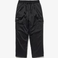 ストレッチ性に優れたリサイクル生地RE;NAPESを使用した2タック5ポケットトラウザーズ。裏地は吸水速乾メッシュ素材のECO MADE COOLMAXを用いた総裏の仕様。ゆとりのあるストレートシルエットで、裾口のシルエットはベルクロで調節可能。カーゴポケット右側に両端の斜線でサイズを表記するプリントネームを付属。