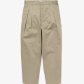 張り感のあるコットン/ポリエステル混紡のツイル生地を使用した2タックトラウザーズ。ややテーパードしたワイドシルエット。